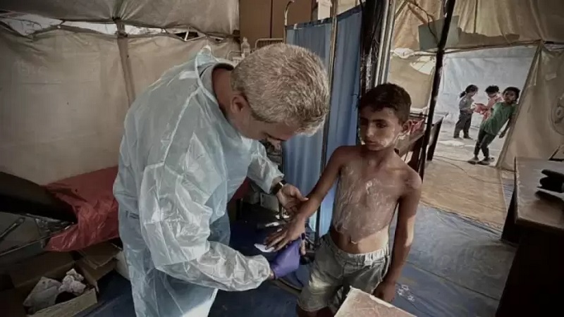 وقال، إن "الطواقم الطبية رصدتْ أمراضًا غريبة عن القطاع عجز الأطباء عن تشخصيها جراء غياب المعدات الطبية."