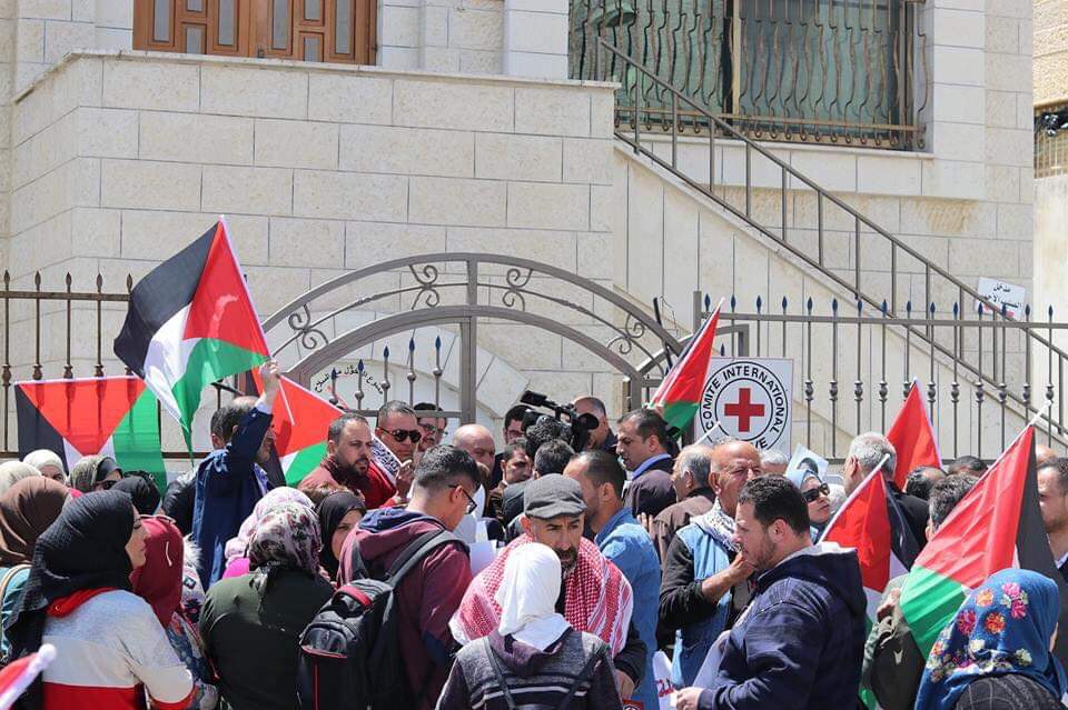 واحتشد المشاركون تلبية لدعوة من هيئة شؤون الأسرى ونادي الأسير الفلسطيني، وجمعية الأسرى المحررين ولجنة أهالي الأسرى، ولجنة التنسيق الفصائلي، أمام مقر الصليب الأحمر الدولي في مدينة بيت لحم، رفعوا خلالها صورا لأسرى ويافطات كتبت عليها عبارات الاسناد والتضامن.