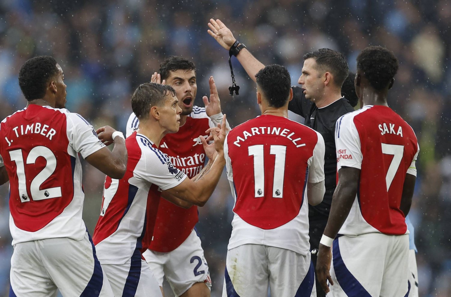 في المقابل، كان غوارديولا غاضباً لحظة إصابة رودري وأيضاً عدم إيقاف الحكم اللعب عندما جاء هدف آرسنال الأول. وبدا كايل ووكر قائد مانشستر سيتي محبطاً من الحكم، وأشار إلى أنه ورّطه في الهدف الأول لآرسنال. واستدعى الحكم الظهير الأيمن لمنتخب إنجلترا لمناقشته وخلال الحديث معه نفّذ آرسنال هجمة استغلها كالافيوري وسجل هدف التعادل 1 - 1. وقال ووكر: «لم أذهب إلى الحكم بل هو من قرر استدعائي مع بوكايو ساكا... طالما أنه استدعاني، فكان يجب عليه الانتظار لحين عودتي إلى مكاني قبل تمرير الكرة فوقي، إذا ذهبت إلى الحكم بإرادتي وتركت مكاني لتحملت مسؤولية الخطأ، ولكنه استدعى قائدي الفريقين من أجل تهدئة اللاعبين».
