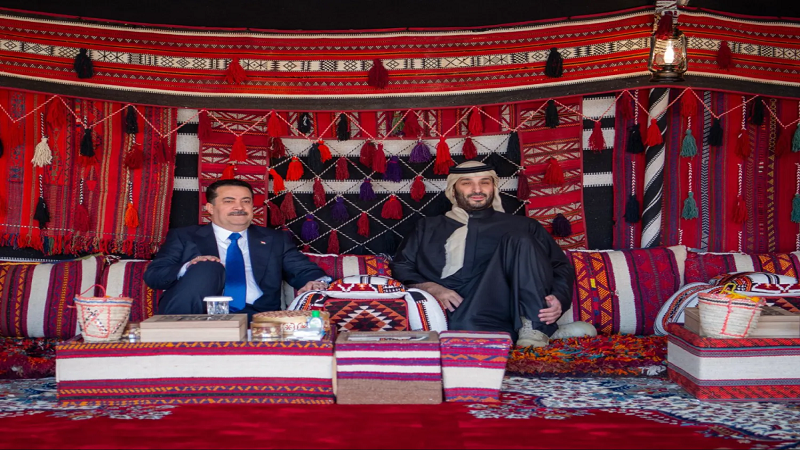 متابعات: التقى الأمير محمد بن سلمان، ولي العهد السعودي رئيس مجلس الوزراء، في المخيم الشتوي في العلا، رئيس مجلس الوزراء، القائد العام للقوات المسلحة في جمهورية العراق، محمد شياع السوداني.