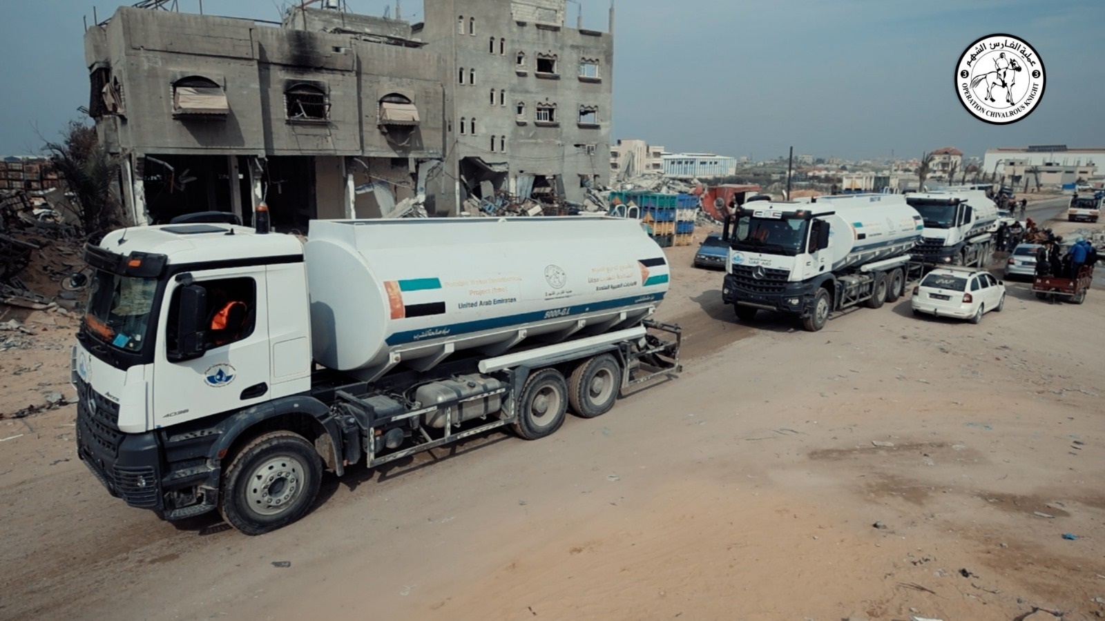 وسيرت عملية الفارس الشهم 3 قافلة سيارات المياه لتزويد السكان بمياه الشرب وتعزيز صمودهم بالتعاون مع مصلحة مياه بلديات الساحل، حيث وصلت صهاريج المياه إلى عدة مناطق في رفح، لتلبية احتياجات المواطنين في مناطق سكنهم التي دُمرت فيها خطوط المياه، في وقت يعجز فيه السكان عن الحصول على المياه الصحية.