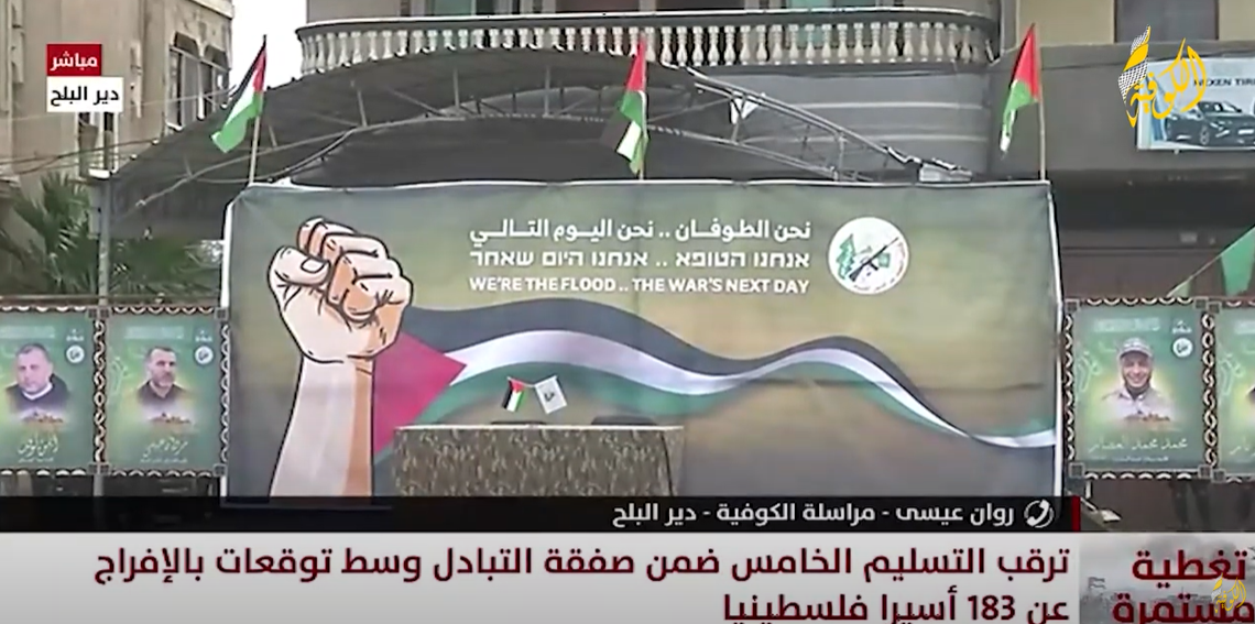 مراسلتنا في دير البلح: انتشار واسع وحشود كبيرة و تجهيزات أخيرة لإتمام عملية تسليم الرهائن