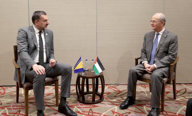 مصطفى يبحث مع وزير خارجية البوسنة سبل الاستفادة من الخبرات في إعمار غزة