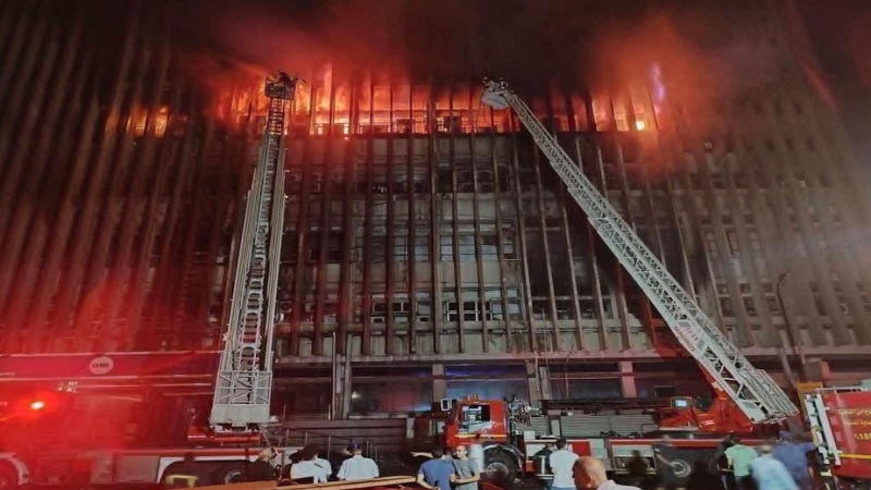 14 مصابًا في حريق ضخم بمركز اتصالات وسط القاهرة
