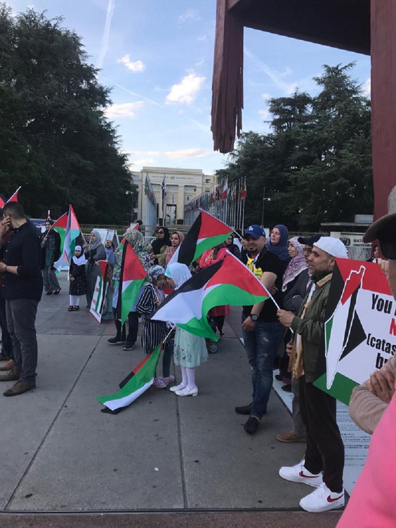 بالصور|| مظاهرة أمام مقر الأمم المتحده في جنيف تنديدًا بصفقة القرن