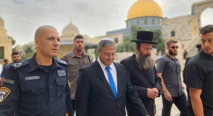 وكان "بن غفير"، قد قاد اقتحامات المستوطنين للمسجد الأقصى ، تحت حماية شرطة الاحتلال الإسرائيلي، تخللها جولات في باحات الأقصى وتأدية طقوس تلمودية في المنطقة الشرقية من المسجد، بحماية شرطة الاحتلال.