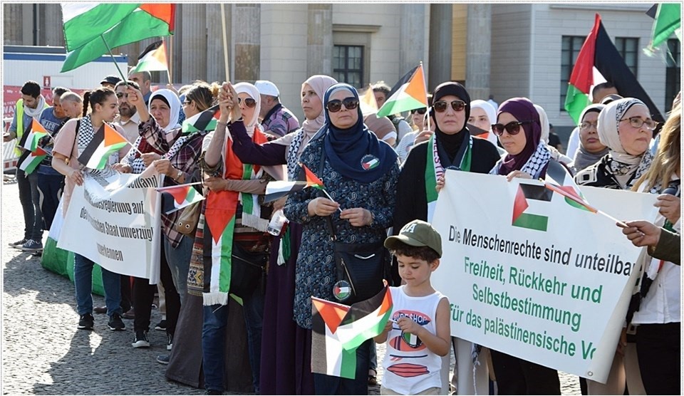 وخرج المتظاهرون في ساحة بوابة في برلين، تعبيرا عن رفض الشعب الفلسطيني بمختلف أطيافة لقرارات الإدارة الامريكية بتمرير "صفقة القرن"، واستبدال الحل السياسي بالاقتصادي، وتمسكهم بالموقف الفلسطيني وبالثوابت الوطنية.