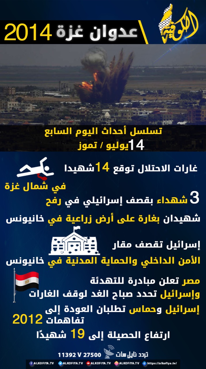 عدوان غزة 2014.. تسلسل أحداث اليوم السابع