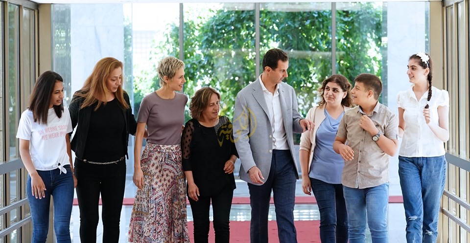 وأوضحت الرئاسة السورية أن المناسبة كانت استقبال مجموعة من أبناء وبنات ضحايا الحرب السورية، من المتفوقين في شهادتي التعليم الأساسي والثانوي، برفقة أمهاتهم.