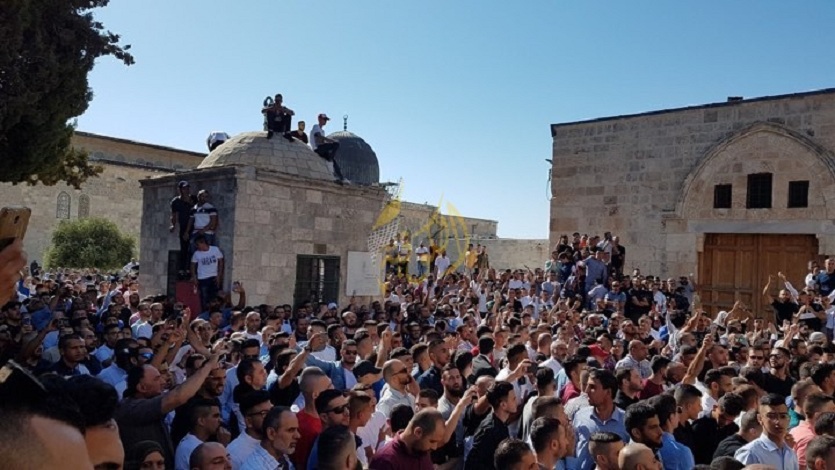 وكان آلاف الفلسطينيين أدوا صلاة عيد "الأضحى" في رحاب المسجد الأقصى تلبية لدعوات التصدي لاقتحامات المستوطنين للمسجد في ذكرى ما يسمى "خراب الهيكل" المزعوم، وشهد محيط المسجد الأقصى توترات أثناء الليل جوبهت بتكبيرات المسلمين.