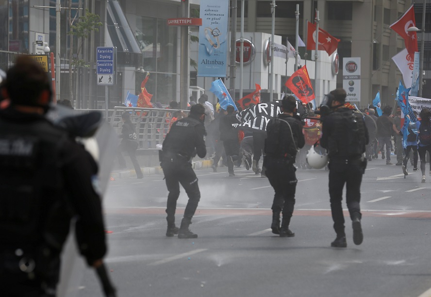 واحتشد المحتجون قرب مبنى البلدية في ديار بكر، الذي طوقته السلطات بحواجز معدنية بعدما حل مسؤول حكومي أمس محل رئيس البلدية المنتخب.