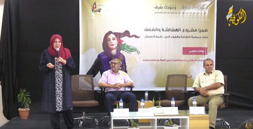 مريم زقوت مدير عام جمعية الثقافة والفكر الحر والناشطة النسوية تحدثت لـ"الكوفـية" عن هذا اليوم الدراسي، "الذي اعتبرته بمثابة ورشة الهدف منها تعزيز دور الاعلاميات وتمثيلهم في النقابة ، وأن يكون للمرأة تأثير ودور في نقابة الصحفيين ، خصوصا وأن تمثيل المرأة حالياً لا يتجاوز الـ15%".