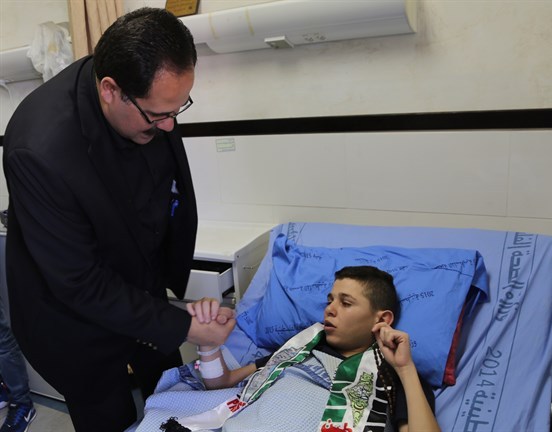 جاء ذلك خلال زيارته للطفل التميمي للاطمئنان على سلامته في مجمع فلسطين الطبي برام الله، بعد أن فقدَ بصره في معتقلات الاحتلال نتيجة الإهمال الطبي، حيث رافق الوزير في الزيارة مدير عام العلاقات الدولية والعامة نديم سامي.