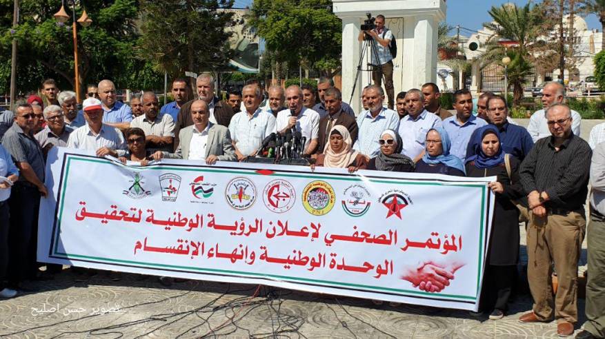 وتقدمت ثمانية فصائل فلسطينية، حركة الجهاد الإسلامي، والجبهتان الشعبية والديمقراطية، وحزب الشعب، والمبادرة الوطنية، وفدا، والجبهة الشعبية القيادة العامة، والصاعقة، يوم  الخميس، بـ "رؤية وطنية" لتحقيق الوحدة وإنهاء الانقسام الفلسطيني، استنادًا لاتفاقيات المصالحة الوطنية السابقة في القاهرة وبيروت.