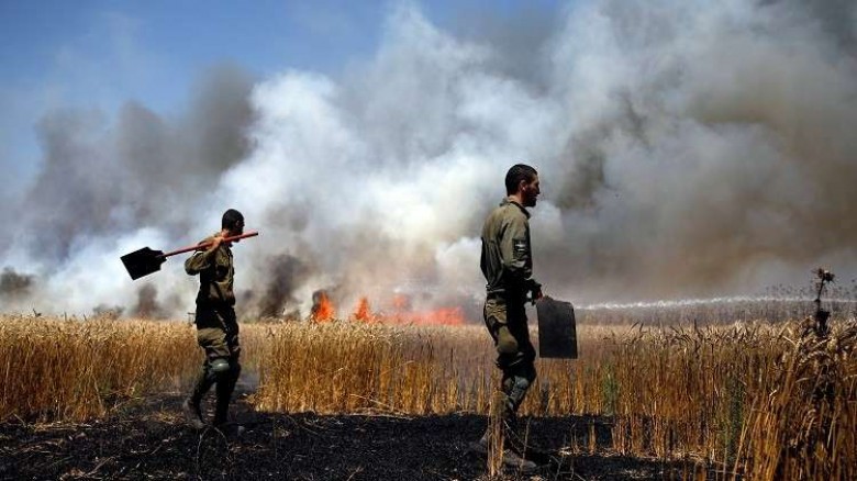 اندلاع 12 حريقًا بفعل طائرات وبالونات حارقة أطلقت من غز
