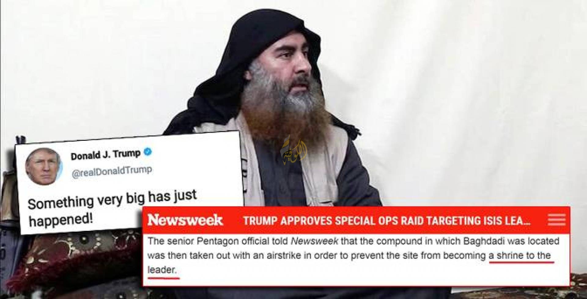 وأعلن الرئيس الأمريكي دونالد ترامب، مقتل زعيم تنظيم "داعش" أبو بكر البغدادي بصحبة عدد كبير من معاونيه، خلال عملية عسكرية للقوات الأمريكية في محافظة إدلب شمالي سوريا.