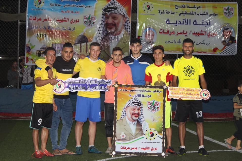 وأطلقت لجنة الأندية في مجلس الشباب الفلسطيني بحركة فتح – ساحة غزة، دوري الشهيد ياسر عرفات لليوم الثاني على التوالي في جميع محافظات قطاع غزة، وذلك إحياءً للذكرى الخامسة عشرة لاستشهاد الزعيم الراحل ياسر عرفات.