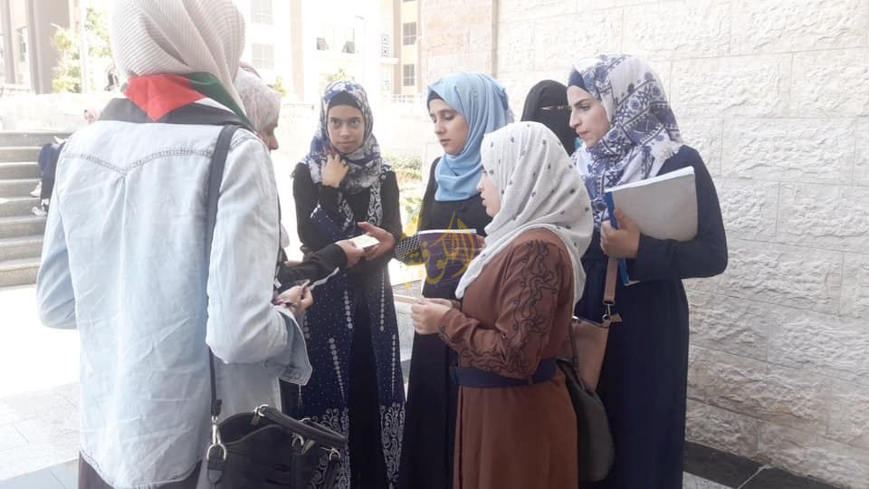 ووزعت ماجدات الشبيبة الفتحاوية بطاقات "التصوير المخفض"، على طلبة كلية طب الأسنان في جامعة الأزهر فرع غزة، وطلبة الكليات الأدبية في جامعة الازهر فرع المغراقة.