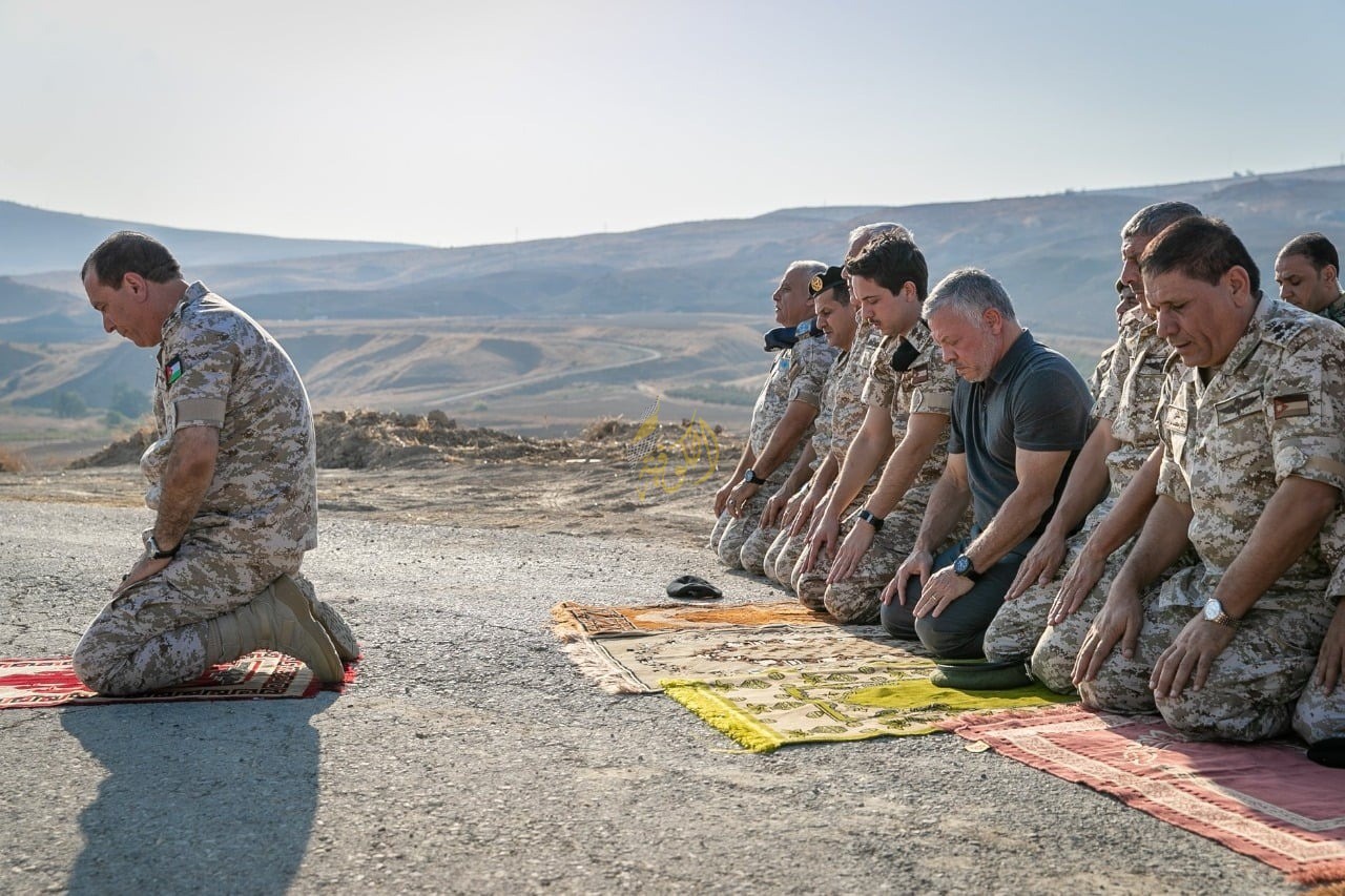 عمان: أدى الملك الأردني، عبد الله الثاني، برفقة ولي العهد الأمير الحسين بن عبد الله، اليوم الإثنين، صلاة العصر في منطقة الباقورة.
