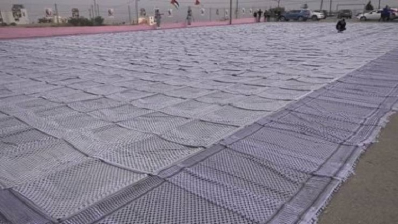 "الكوفية" المعروضة تأتي استكمالا لفعالية أطلقت العام الماضي من صرح الشهيد عرفات في دورا، بكوفية كانت مساحتها 1400 متر مربع، واستكملت هذا العام لتصل إلى 3000 متر مربع.