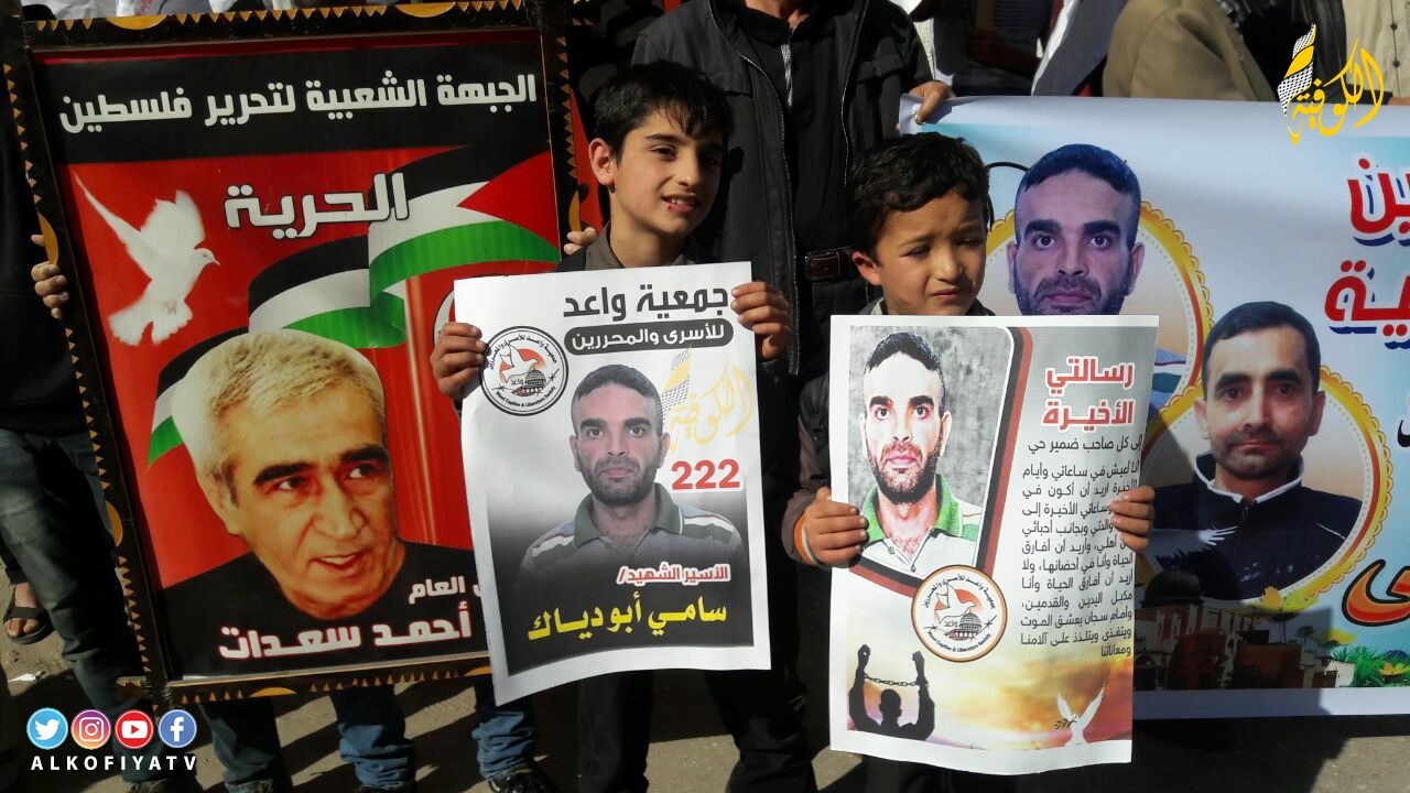خان يونس: شارك عشرات المواطنين في وقفة احتجاجية، دعت لها جمعية واعد للأسرى والمحررين وحركة المجاهدين، تضامنًا مع الأسرى المرضى، اليوم الخميس، أمام مقر الصليب الأحمر بخان يونس جنوبي قطاع غزة، تحت شعار "أنقذوا أسرانا المرضى"، بمشاركة ممثلي القوى الوطنية والإسلامية وعدد من الأسرى المحررين، ورفعوا خلالها صورًا للأسير الشهيد سامي أبو دياك، وأسرى مرضى في سجون الاحتلال.