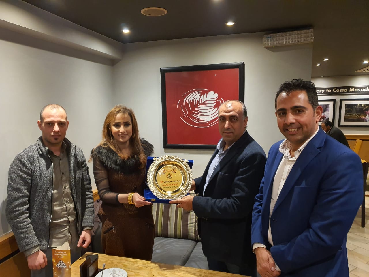 وفي نهاية اللقاء قدمت اللجنة درعا تذكاريا إلى الكاتبة، تقديرا لجهودها في إلقاء الضوء على تفاصيل القضية ومحاولة توصيل الصوت الفلسطيني عبر الإعلام المصري.
