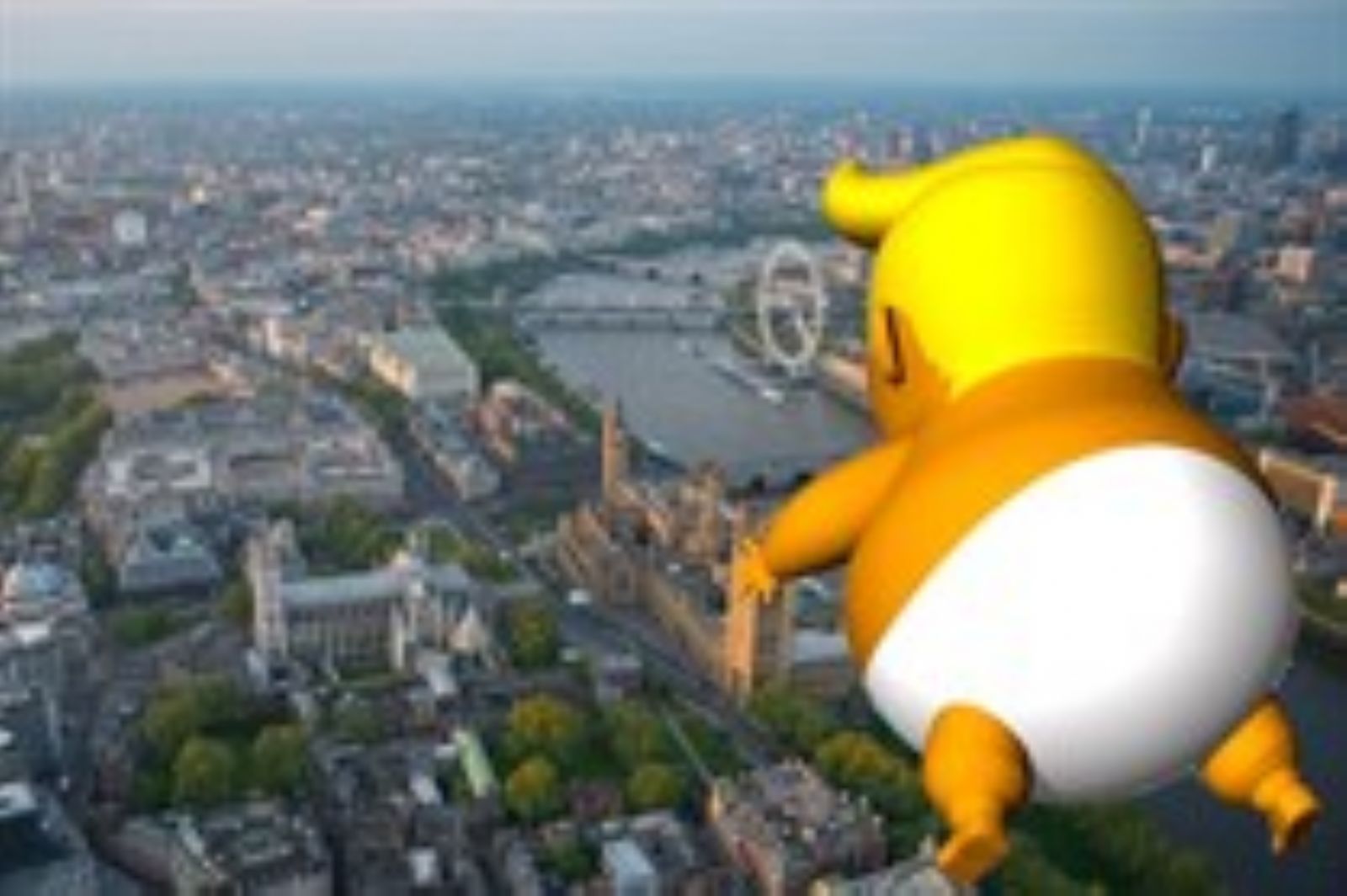 لندن: أطلق محتجون اليوم الجمعة في سماء لندن بالونًا يصور رئيس أمريكا دونالد ترامب كطفل رضيع، يرتدي حفاضة، وهاتفًا محمولًا في يده، لتعريفه بأن "بريطانيا تضحك عليه".