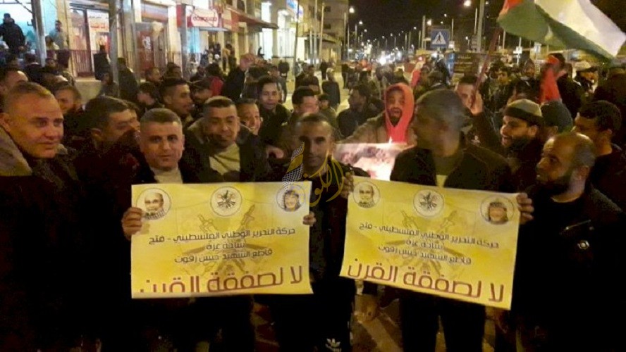 البريج: نظمت حركة فتح بالمحافظة الوسطى مسيرة حاشدة تنديدا باعلان الرئيس الامريكي عن صفقة ترامب مساء الثلاثاء.