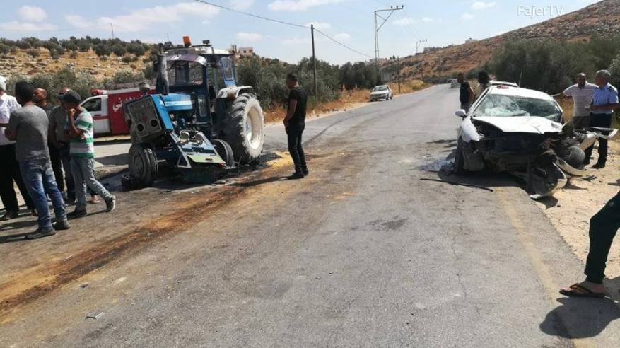 وقال الجعبري:" الحادث الثاني نتج عن تصادم جرار زراعي مع مركبة خاصة، ما أدى لإصابة 4 أشخاص، حيث عملت إسعاف الهلال الأحمر واسعاف مستشفى أبو الحسن القاسم في يطا على نقلهم إلى المستشفى.