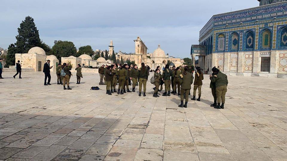 وأفاد شهود عيان، بأن 50 مستوطنًا و20 طالبًا يهوديًا، بحماية شرطة الاحتلال تجولوا في الساحات بشكل استفزازي بالتزامن مع اقتحام أفراد من شرطة الاحتلال عددا من المصليات المسقوفة في المسجد الأقصى المبارك بشكل استفزازي.