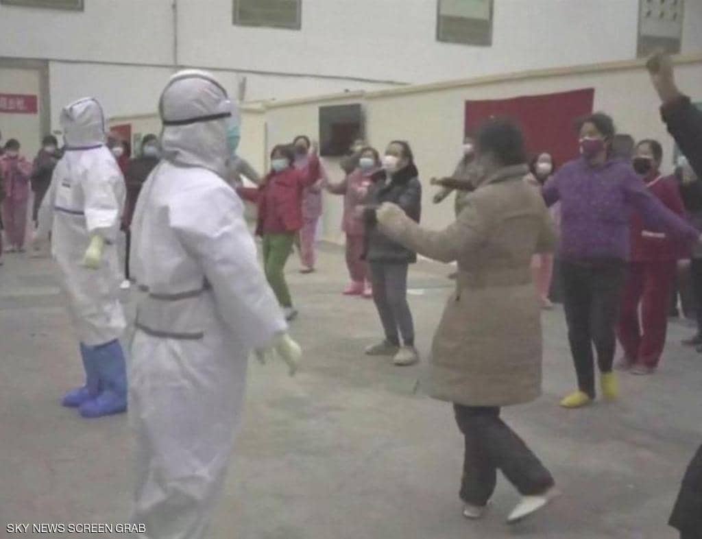 وأظهر مقطع فيديو نشرته وكالة "رويترز"، مجموعة من المصابين يرقصون بشكل جماعي داخل قاعة لعزل حاملي الفيروس في مستشفى صيني بمدينة ووهان، معقل المرض.