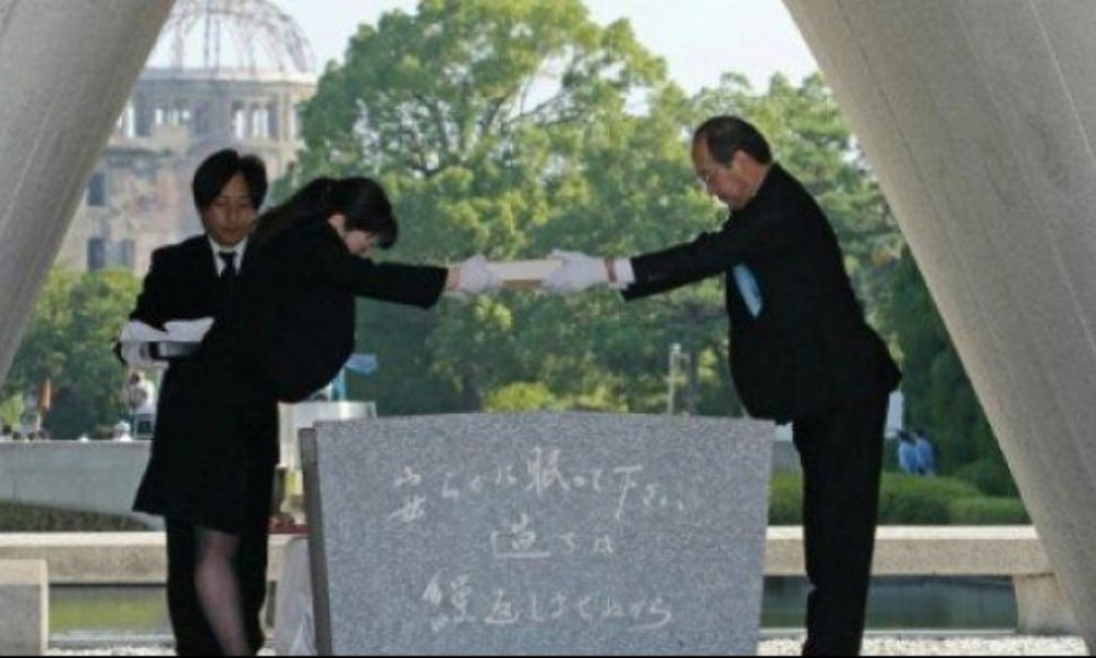 وتابع "الجهود للتخلص من الأسلحة النووية يجب أن تستمر".لكن دعوته تظهر العلاقة المتناقضة لليابان مع الأسلحة النووية، إذ أن المسؤولين اليابانيين يعربون بشكل مستمر عن معارضتهم لامتلاك هذه الأسلحة، لكن دفاع دولتهم يعتمد بشكل أساسي على المظلة النووية الأميركية.