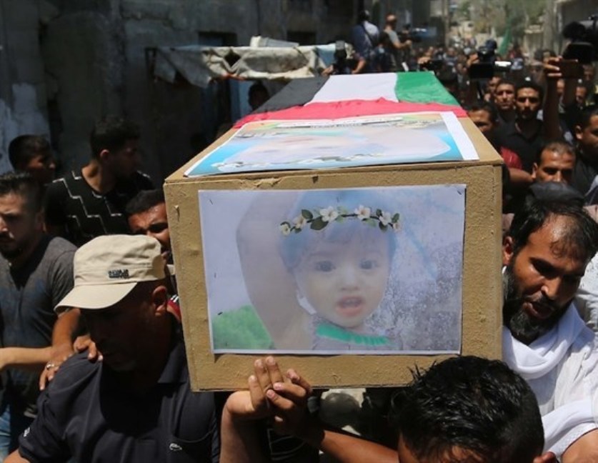 وحمل المواطنون جثمان الشهيدة الحامل في الشهر التاسع إيناس أبو خماس مع جثمان ابنتها بيان (عام ونصف) في تابوت واحد حمل علم فلسطين وصورة للشهيدة الرضيعة.