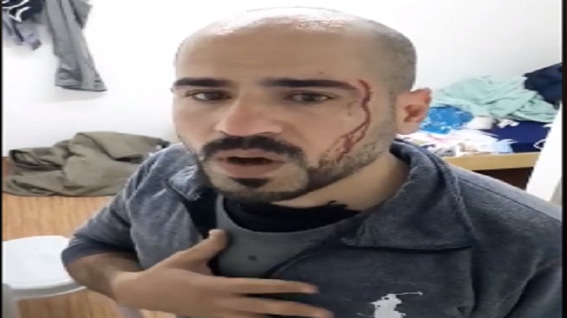 وأَضاف المواطن: أنه ذهب لشراء "كروز"  زجاجات مياه وطلب منه العسكري جزء منه، فرفض فقام الشرطي بضربه ومن ثم ضربه من قبل مجموعة من افراد الشرطة داخل الحجر.