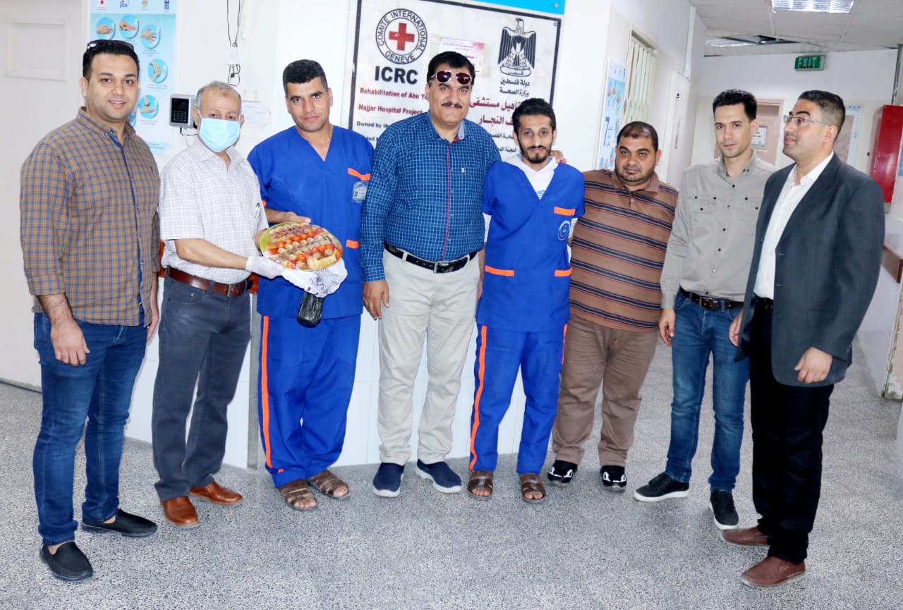 رفح: نظمت المكاتب الحركية الطبية في تيار الإصلاح الديمقراطي في حركة فتح، اليوم الإثنين، زيارة معايدة للطواقم الطبية بمستشفي الشهيد أبو يوسف النجار في محافظة رفح، بمناسبة حلول عيد الفطر المبارك.