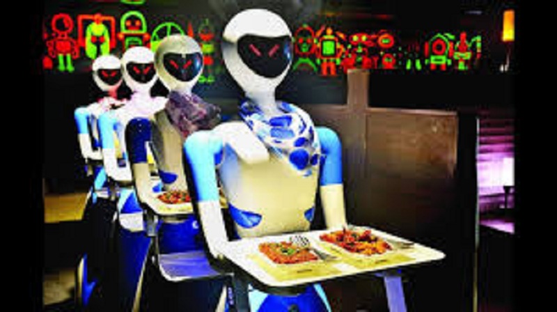 يقدم الثلاثي الآلي أيمي وآكر وجيمس المشروبات لرواد المطعم بما يقلل تحركات الموظفين البشر في أنحاء المكان.