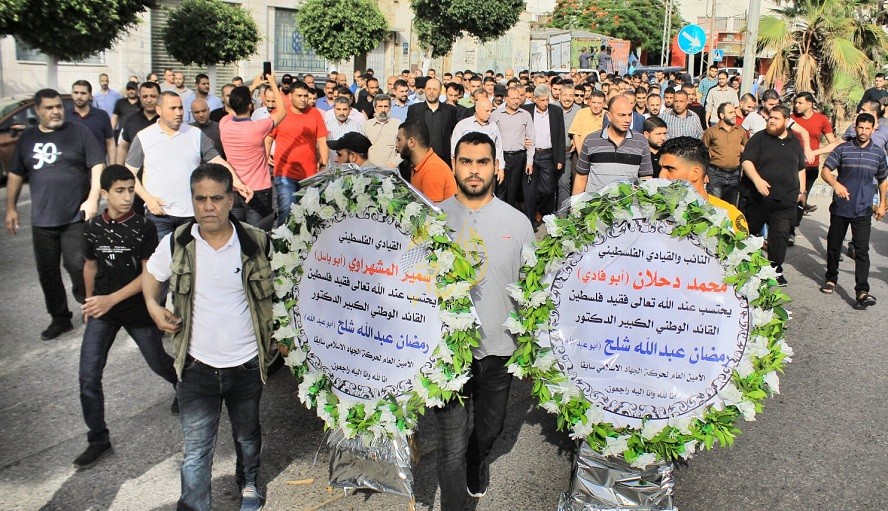 ونعى القائد محمد دحلان، والقائد سمير المشهراوي، المناضل الوطني رمضان شلح، كما نعى تيار الإصلاح الديمقراطي لحركة فتح، فقيد فلسطين الكبير رمضان شلح مستعرضاً العلاقة الحميمة الاستثنائية التي جمعت قيادة التيار معه التي تعزز الشراكة الوطنية والعلاقة الأصيلة الأخوية مع حركة الجهاد الإسلامي .