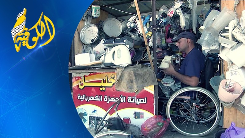 خاص بالفيديو|| "وشاح" يعمل في صيانة الأجهزة الكهربائية من فوق "كرسي متحرك"