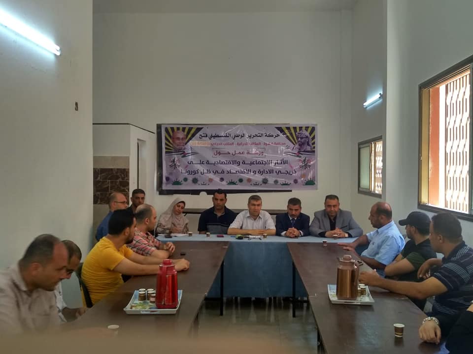 رفح: نظم المكتب الحركي للاقتصاديين في تيار الإصلاح الديمقراطي بحركة فتح، اليوم السبت، ورشة عمل في مدينة غزة، حول الآثار الاجتماعية والاقتصادية على خريجي الإدارة والاقتصاد في ظل تفشي فيروس كورونا.