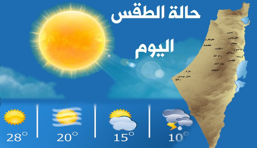 رام الله: قال خبراء دائرة الأرصاد الجوية، إنه من المتوقع أن يكون الجو، اليوم الأحد، صافيا بوجه عام، وحارا في المناطق الجبلية شديد الحرارة في بقية المناطق، ويطرأ ارتفاع على درجات الحرارة لتصبح أعلى من معدلها السنوي العام بحدود 5 درجات مئوية، والرياح غربية إلى شمالية غربية خفيفة إلى معتدلة السرعة تنشط أحيانا والبحر خفيف ارتفاع الموج.