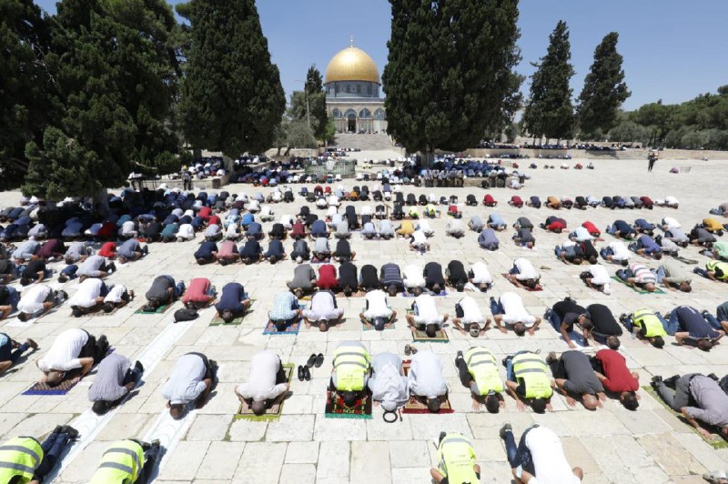 القدس: أفادت دائرة الأوقاف والشؤون الإسلامية بمدينة القدس المحتلة، بأن آلاف المصلين أدوا صلاة الجمعة في المسجد الأقصى المبارك، موضحة أن جميع المصلين التزموا بلبس الكمامة.