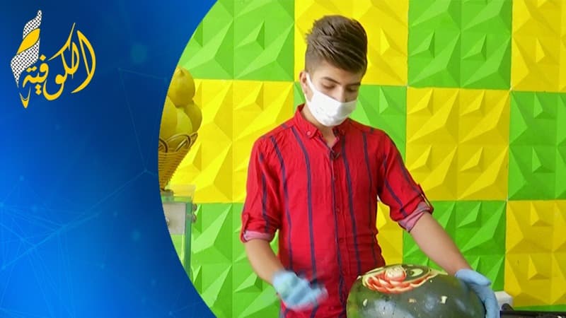 خاص بالفيديو|| شاب أردني يتقن فن النحت على ثمار الفاكهة لجذب الزبائن لمحل عصائر