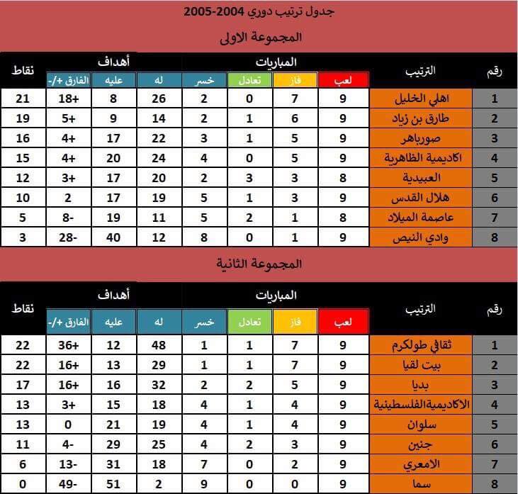 جدول ترتيب فرق 2004/2005 بعد الأسبوع التاسع