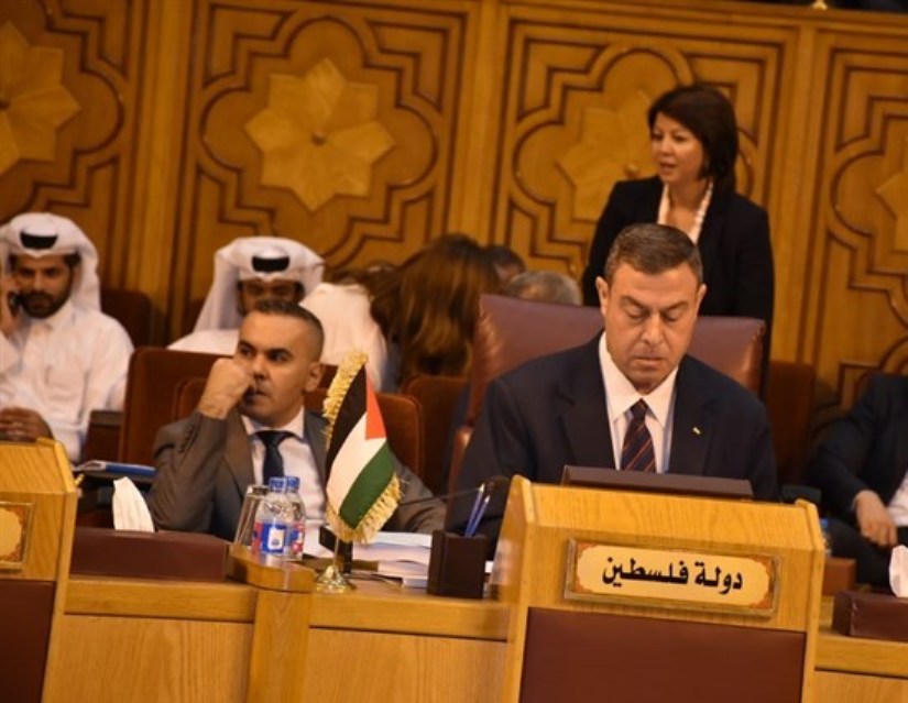 الكوفية وترأس وفد دولة فلسطين في الاجتماع: سفير دولة فلسطين ومندوبها الدائم لدى الجامعة العربية دياب اللوح، ومدير الشؤون العربية بوزارة الخارجية المستشار أول فايز أبو الرب، والسفير المناوب بالجامعة مهند العكلوك، والمستشار تامر الطيب، والمستشار رزق الزعانين، والمستشار جمانة الغول، وجميعهم من مندوبية فلسطين