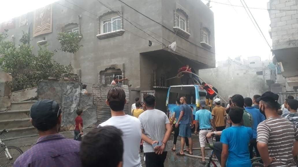 بالصور|| حريق منزل في مخيم جباليا شمال قطاع غزة