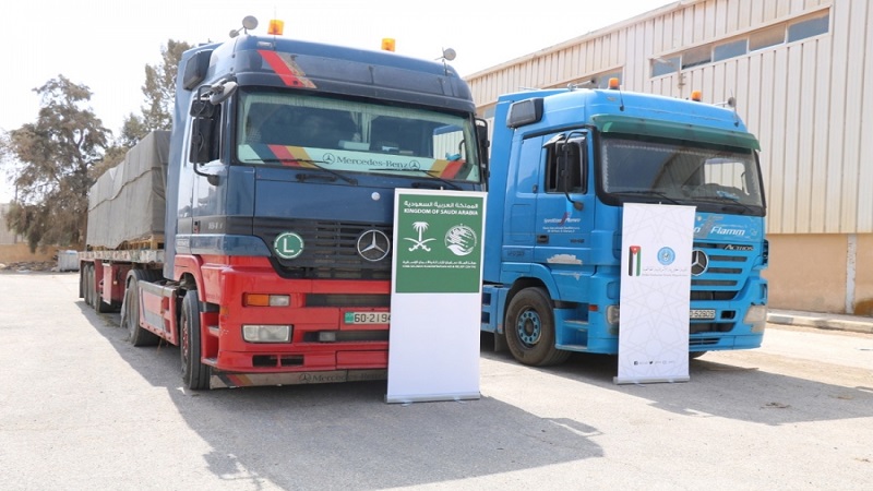 وذكرت الهيئة، في بيان لها، أن القافلة تتكون من شاحنتين تحملان مستلزمات طبية وأدوية سيتم تسليمها إلى وزارة الصحة في فلسطين نظرا للظروف الراهنة التي تمر بها البلاد، وتأتي بتبرع من مركز الملك سلمان للإغاثة والأعمال الإنسانية، والحكومة الهندية، بالإضافة إلى القطاع الخاص الطبي الأردني، بالتنسيق مع سفارة فلسطين لدى الأردن.