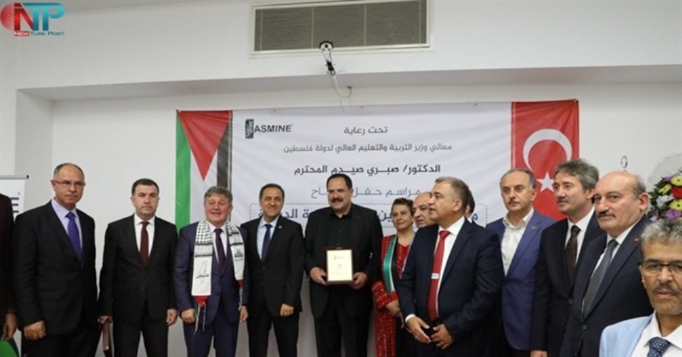 ووزع الوزير صيدم ونائب الوزير التركي، أجهزة "تابليت" على طلبة مدرسة "الفنار"، تحوي المنهاج الفلسطيني.
