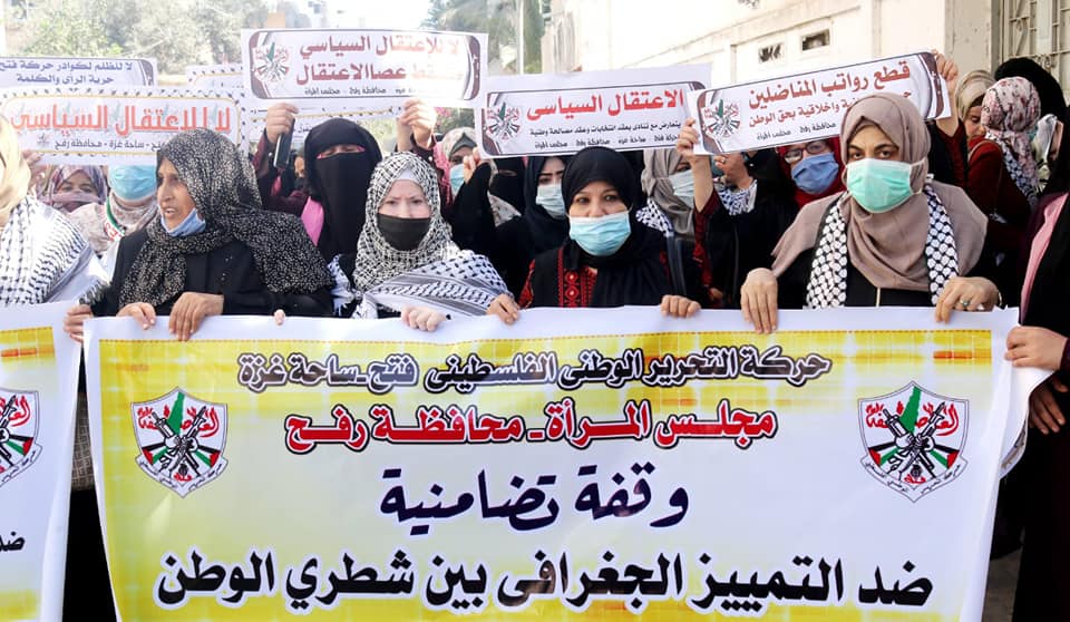 غزة: نظم مجلس المرأة بتيار الإصلاح الديمقراطي في حركة فتح، وقفة احتجاجية في رفح، اليوم الأربعاء، رفضا لسياسة الإعتقال السياسي التي تمارسها أجهزة أمن سلطة رام الله بحق المناضلين من أبناء حركة فتح في الضفة الفلسطينية.