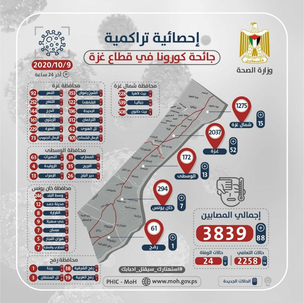 الخارطة الوبائية لمصابي كورونا في قطاع غزة اليوم الجمعة