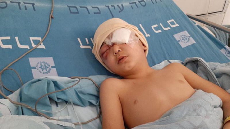 وكان الطفل عيسى عائدًا من مدرسته حين أصيب برصاصة مطاطية في عينه ما أفقده الرؤية في عينه اليسرى